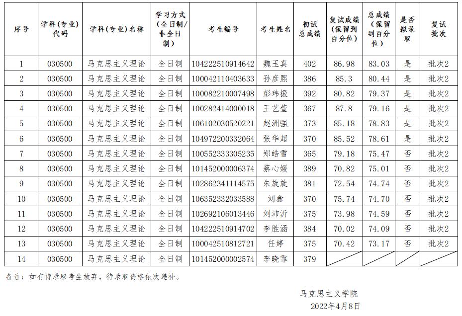 AWC万象城娱乐2022年硕士生招生调剂考生复试结果