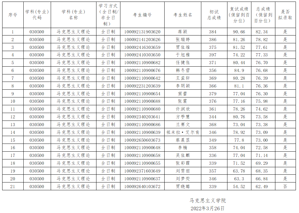 AWC万象城娱乐2022年硕士生招生第一志愿考生复试结果(含拟录取名单,以一级学科/专业为单位)