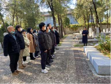 11月16日下午,万象城官网15名教师来到八宝山革命公墓党员干部政德教育基地瞻仰学习。
