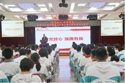 近日,AWC万象城娱乐团委应邀到AWC万象城娱乐附属学校联合开展共青团五四青年节主题教育活动。学院团委书记闻亮带队,2022级研究生张华超、张震向附属学校八年级学生讲授了主题为“请党放心 强国有我”的团课。附属学校师生代表130余人参加活动。