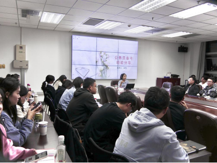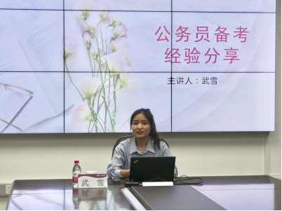 武雪结合马克思主义学科的就业前景分析,指出在正式备考前的准备事项,需要结合自身实际选择适合自己的岗位,同时要不断提升自身的理论知识水平与实践能力。她从公务员考试的时间安排以及面试环节中的注意事项来介绍,明确在备考过程中要制定科学的计划,努力提高学习效率,有针对性地进行复习。她鼓励同学们要以积极的心态面对考试,正确认识自己,根据自身的特点做好职业生涯规划。武雪向同学们表达了美好的祝愿,希望各位同学都能够如愿实现理想。