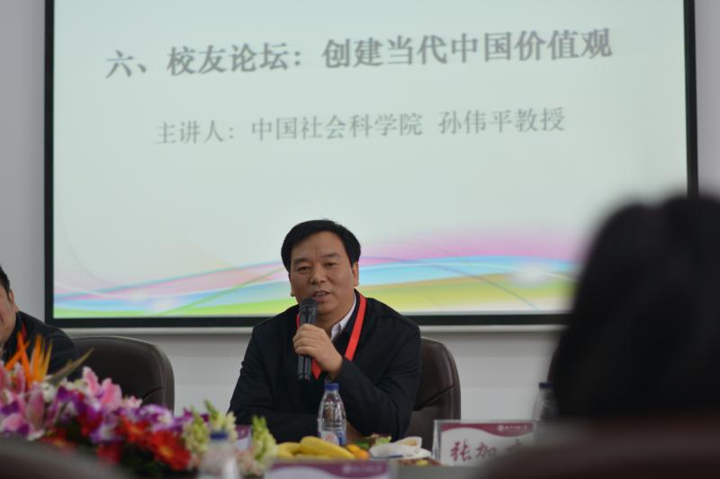 下午2:00,校友学术论坛开始,中国社会科学院孙伟平教授和中央民族大学谢路军教授分别就“创建当代中国价值观”和“中国传统文化中的禅与道”做了专题报告,为在场师生奉献了一场学术盛宴。