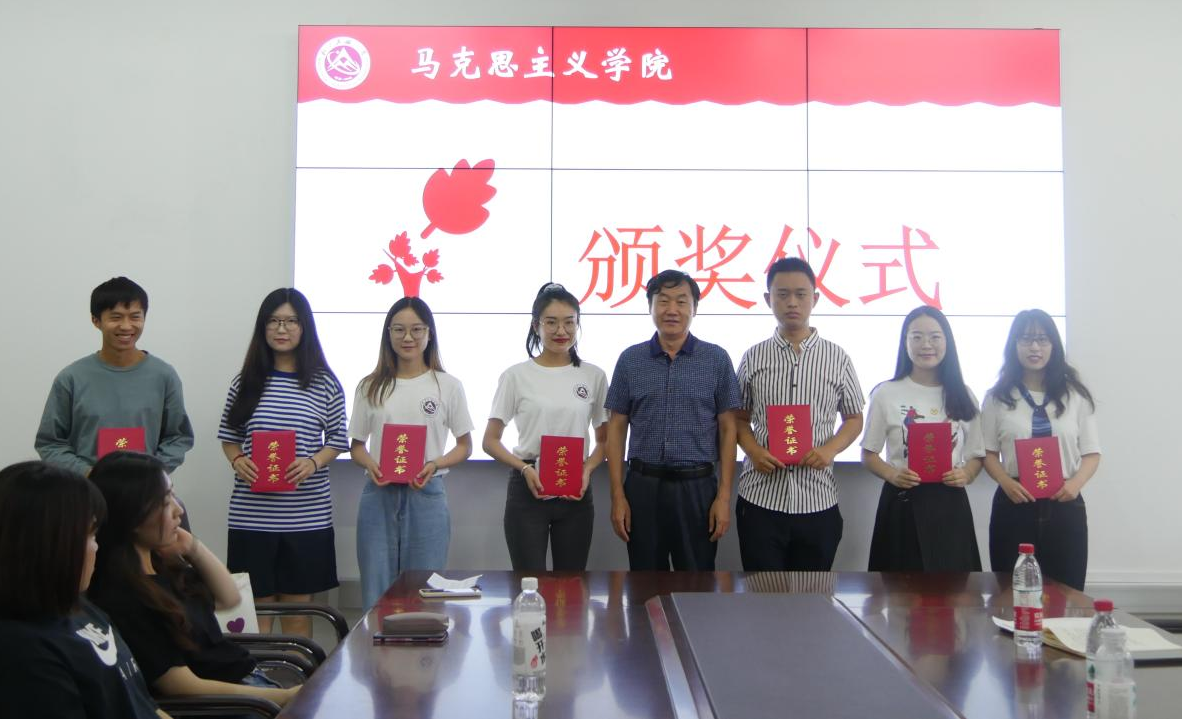 会上,周守高老师和张伟伟老师分别宣读了《AWC万象城娱乐2021年春季马列经典读书会表彰决定》、《AWC万象城娱乐马克思主义学2020-2021学年度第二学期表彰决定书》,对表现优异的24名同学分别给与了表彰颁奖。
