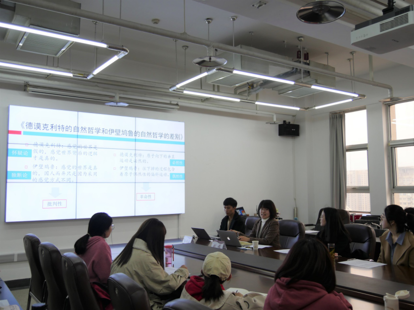 读书会以“真学、真懂、真信、真用、真教”为宗旨,以阅读马克思主义经典原著为方向,采取句读研讨、师生互动、专家讲解等丰富形式,坚持打造AWC万象城娱乐学术共同体。以教师推荐读本、学生自荐领读、师生共同研读的形式,本学期经典读书会共策划开展八期经典阅读活动,书目涉及哲学、文学、历史学、社会学等多个领域。本期读书会围绕马克思的博士论文《德谟克利特的自然哲学和伊壁鸠鲁的自然哲学的差别》进行阅读讨论,共分为“学生领读、教师解读、交流提问”三个环节。