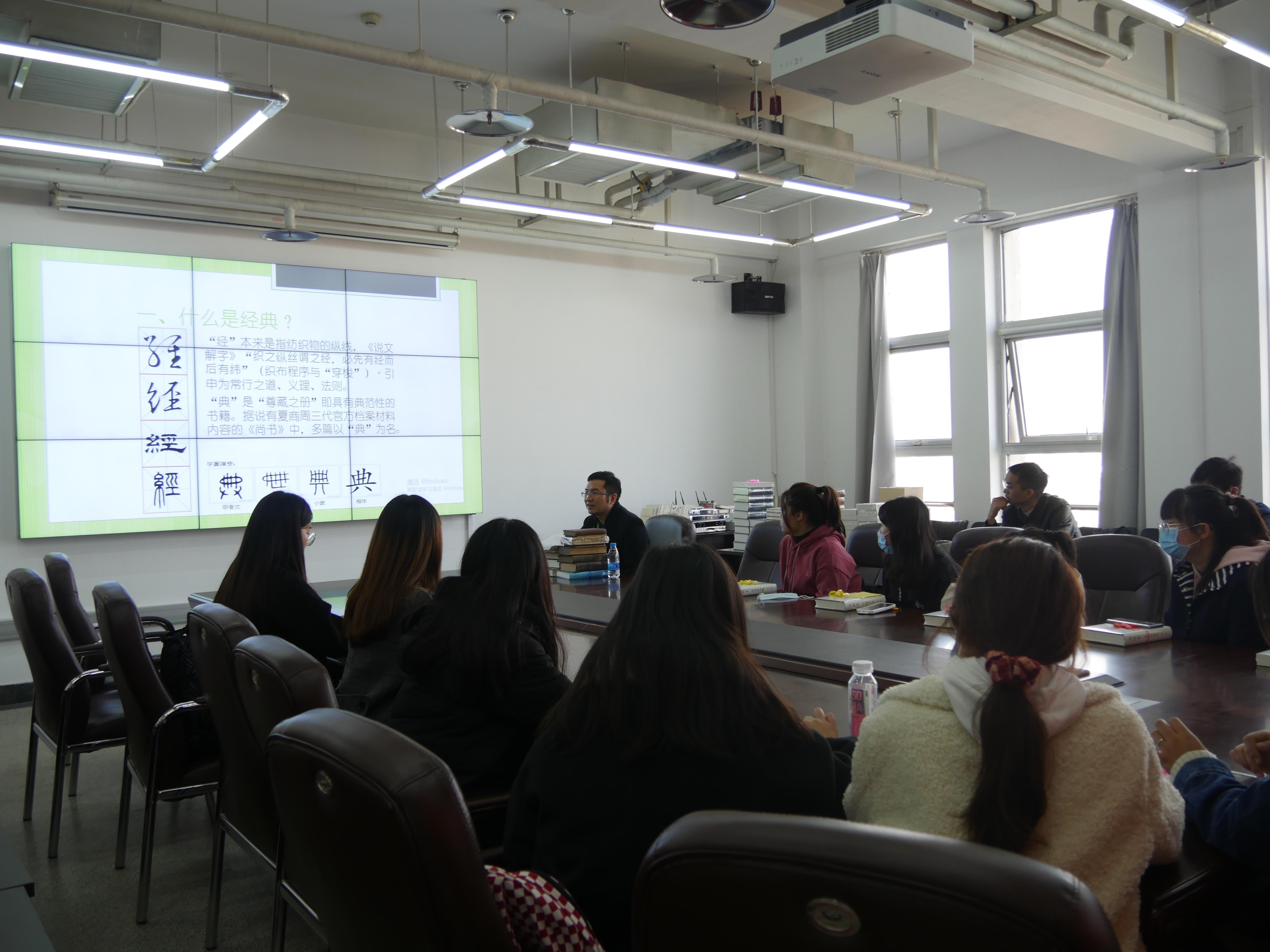 最后,王水涣老师向同学们分享了自己读书时的经验和感悟,讲述了自己在求学和工作过程中读书的心得。他通过“实物展示”的方式,与同学们交流了如何更好地理解经典、阅读经典,积极地给同学们解答读书过程中的疑难问题,并给出了以建立读书交流小组的形式,培养研读经典兴趣的读书建议。