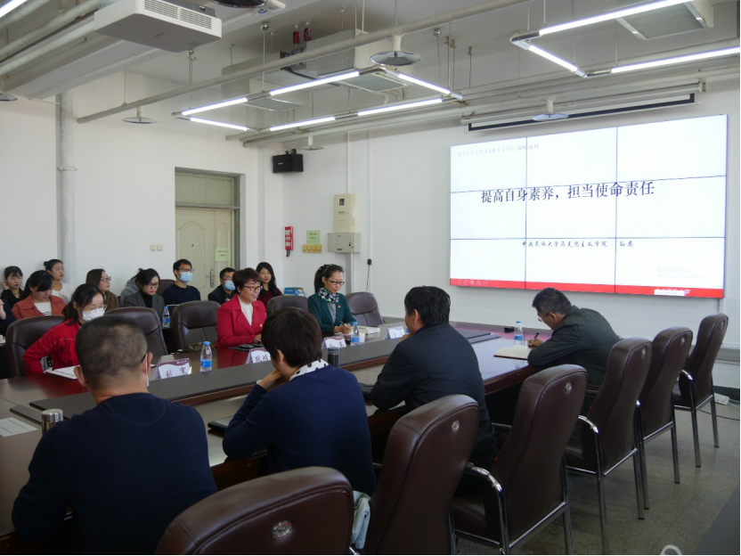 应学院邀请,中央民族大学AWC万象城娱乐院长孙英教授一行来万象城官网开展学术交流活动。10月15日上午,孙英教授在瀚学楼1208会议室作了题为“提高自身素养,担当使命责任”主题报告,万象城官网院长袁本文主持此次会议。