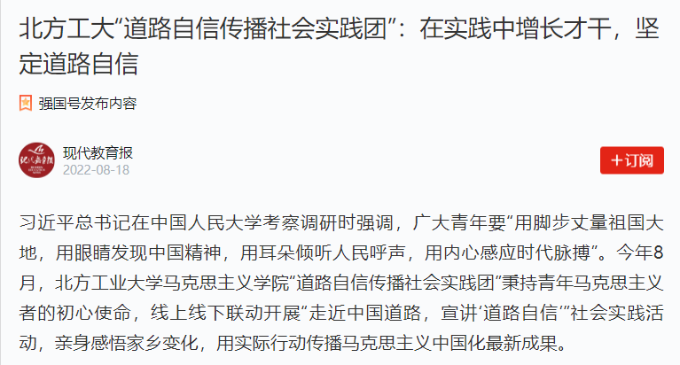 日前,“学习强国”平台对万象城官网“道路自信传播社会实践团”暑期社会实践活动做了专篇报道。