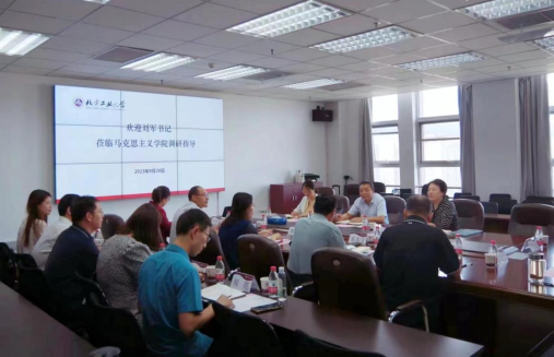 刘军听取了学院工作汇报,与教师代表进行座谈交流,并实地走访了学院办公场所。