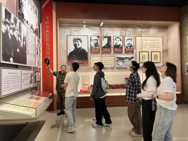 研学团先后参观了延安革命纪念馆、枣园革命旧址、宝塔山、中共中央西北局纪念馆、南泥湾大生产纪念馆、延安文艺纪念馆等地,全方位学习了毛泽东等老一辈无产阶级革命家在延安的十三年里生活战斗、艰苦创业、从胜利走向新的胜利的光辉事迹。在延安革命纪念馆,大量珍贵的历史文物和详实的文字图片资料陈列在眼前,多媒体手段使得当年的场景生动再现;在枣园革命旧址,研学团参观了老一辈无产阶级革命家在延安的故居,简陋的办公环境给大家留下了深刻的印象,师生们对党艰苦朴素的优良传统、开拓进取的革命精神有了更加直观的体悟;在中共中央西北局纪念馆,研学团全面了解了西北革命根据地创建、发展、壮大的战斗历程,学习了林伯渠、习仲勋等无产阶级革命家领导陕甘宁边区人民创建模范的抗日民主根据地的奋斗历史;在南泥湾大生产纪念馆,研学团共同追忆了军民团结一致进行大生产运动那段艰苦而光辉的垦荒岁月,深刻感悟了“艰苦奋斗,自力更生”的南泥湾精神。