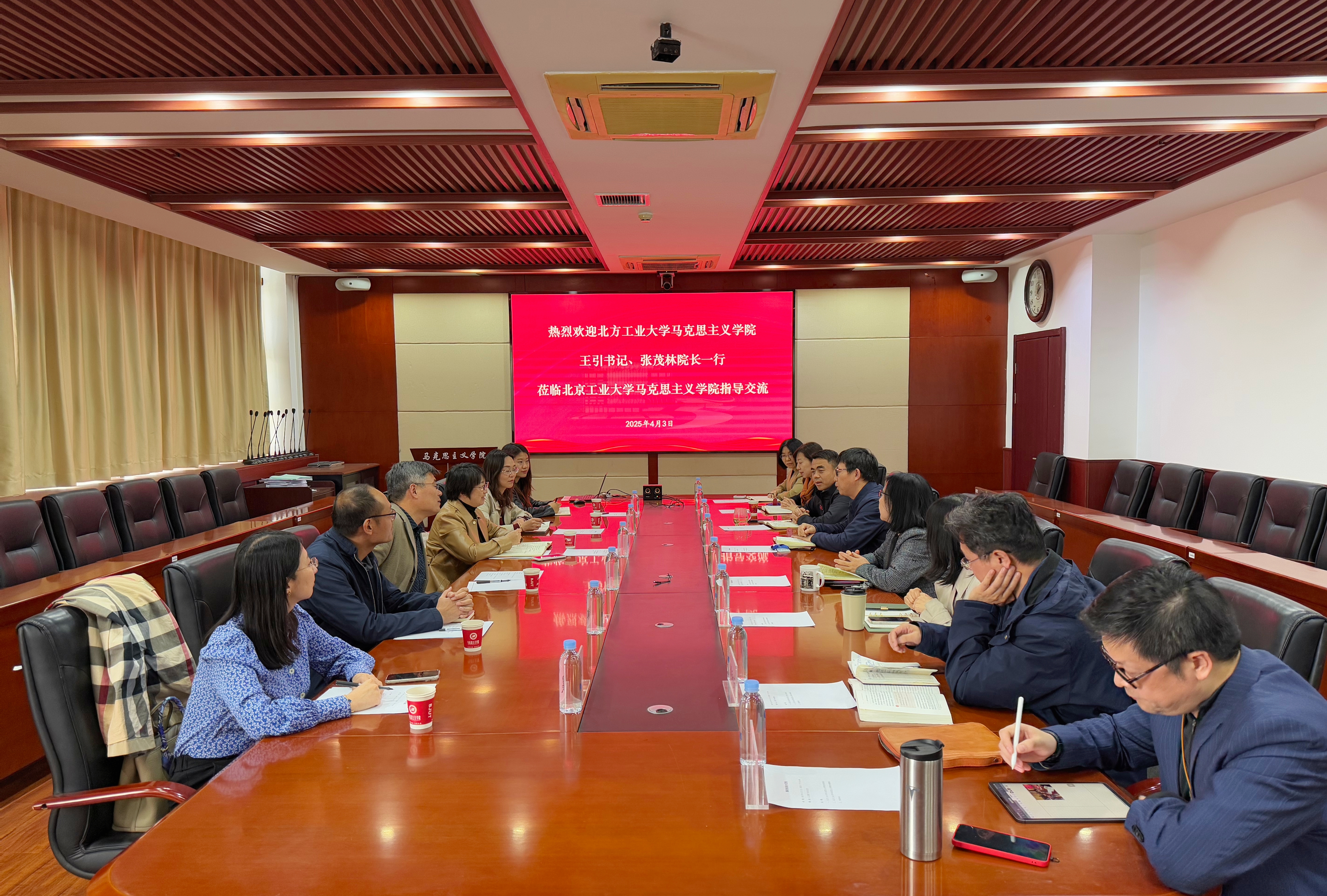 为学习北京市重点AWC万象城娱乐及思政课建设的先进经验,4月3日下午,我校AWC万象城娱乐党委书记王引、党委副书记、院长张茂林率队一行前往北京工业大学AWC万象城娱乐进行调研交流。北京工业大学AWC万象城娱乐党委书记安哲锋、党委副书记、院长丁云等领导热情接待并出席了调研座谈会。