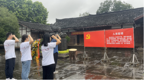 细雨绵绵、哀思殷殷,实践团同纪念馆工作人员面向罗瑞卿半身铜像默哀并三鞠躬。随后,全体党员面向党旗,重温入党誓词,进一步坚定理想信念。纪念馆馆长雷军表示,“罗瑞卿纪念馆一直以来积极与各地高校达成共建合作关系,让思政课的理论教育、精神塑造和价值引领与老一辈无产阶级革命家们高贵的品质相融合。基地共建的目的在于将红色资源与为党育人、为国育才更好地结合起来,不断弘扬革命精神,教育引导学生在传承红色基因中坚定报国信念、在赓续红色血脉中汲取创新力量。”