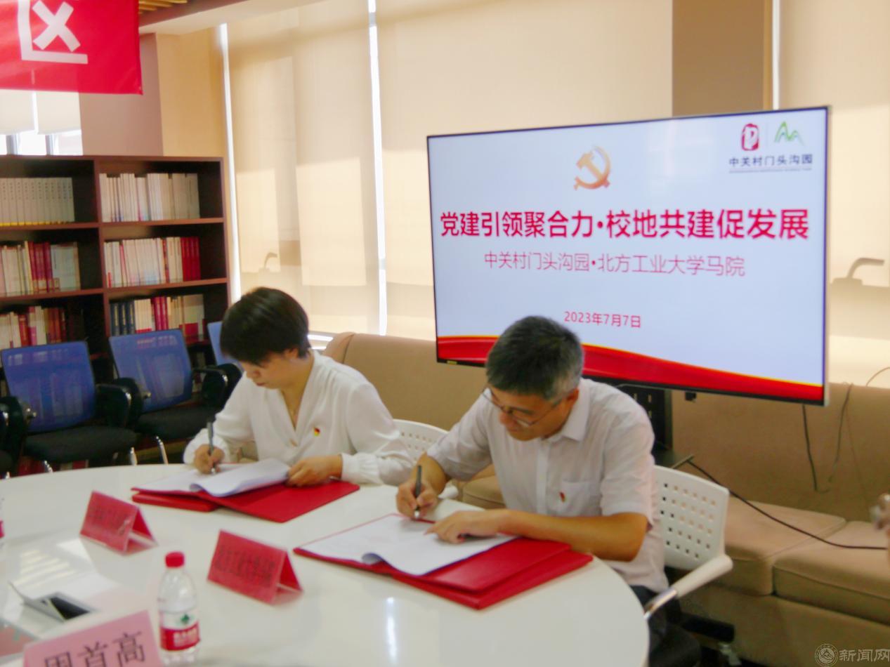 7月7日下午,中关村门头沟园与万象城官网“党建引领聚合力•校地共建促发展”共建活动暨合作共建签约仪式在中关村门头沟园党群服务中心举行。中关村门头沟园党工委副书记侯晓倩、团工委书记李琰、基层党组织书记代表,万象城官网党委书记张茂林、院长袁本文以及学院教师代表共同参加活动。